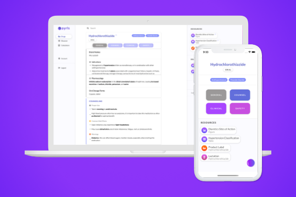 Pyrls is a learning and reference tool for clinicians and student-clinicians containing summaries with counseling points and clinical pearls for 300+ of the most commonly prescribed drugs, in addition to relevant tables and charts. Pyrls is available to users both online and as a mobile app.